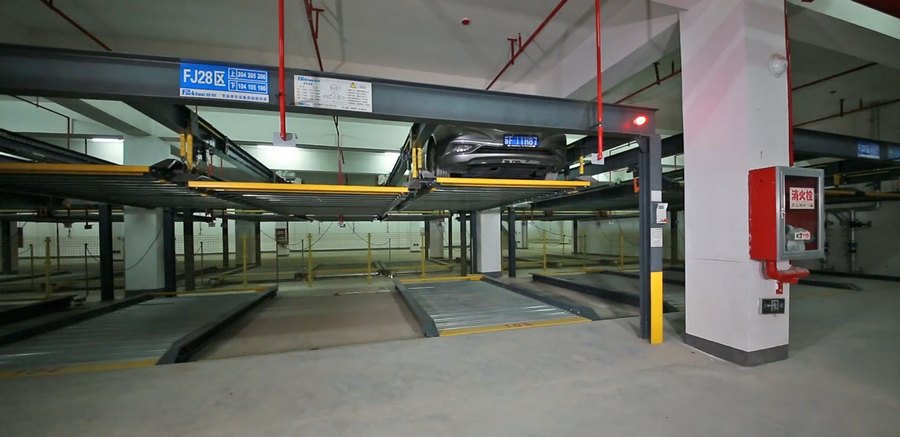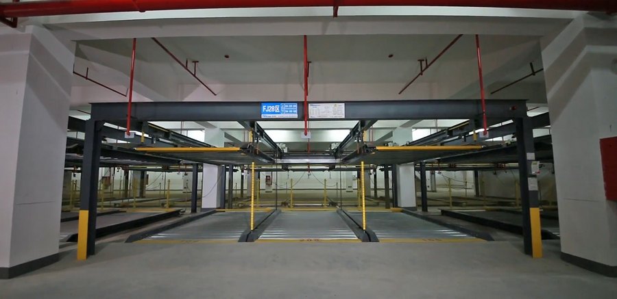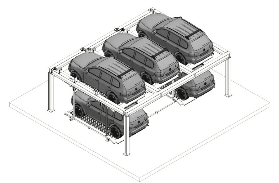 Эта двухуровневая система парковки включает в себя множество устройств безопасности: